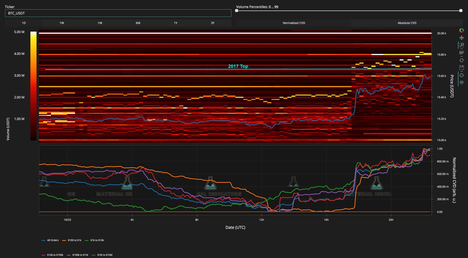Material Indicators, which tracks order book liquidity changes, further noted that the resistance level corresponding to Bitcoin’s old all-time high from 2017 had softened.