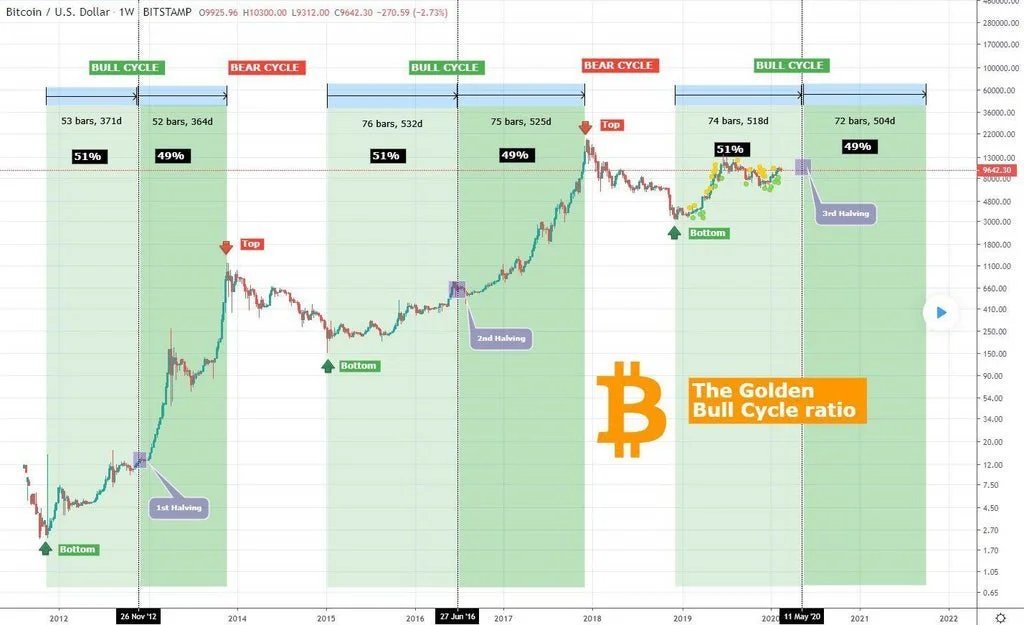 “The average Bitcoin bear market lasts 12.5 months. This is called the Golden Bull Cycle ratio,” hopeful developer James Bull commented at the weekend.