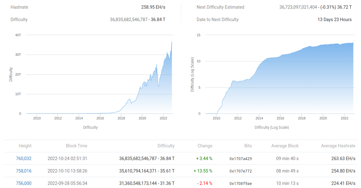 Thanks to the added hash rate, difficulty increased by another 3.44% on Oct. 24, reaching yet another all-time high of 36.84 trillion.