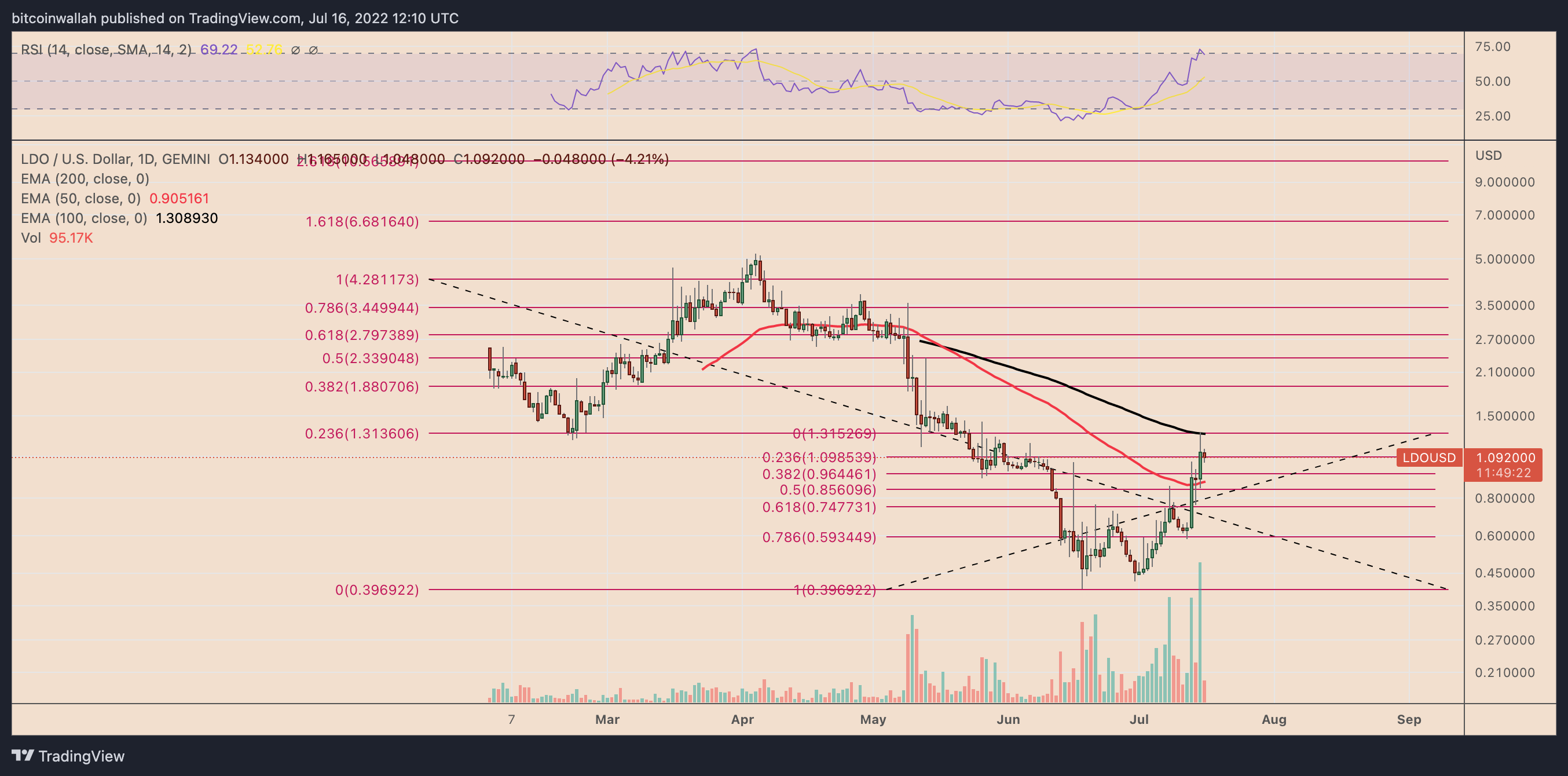 On the other hand, a break below the 50-day EMA would risk crashing LDO to around $0.75, which coincides with the 0.618 Fib line of the Fibonacci retracement graph drawn from $0.39-swing low to $1.31-swing high.