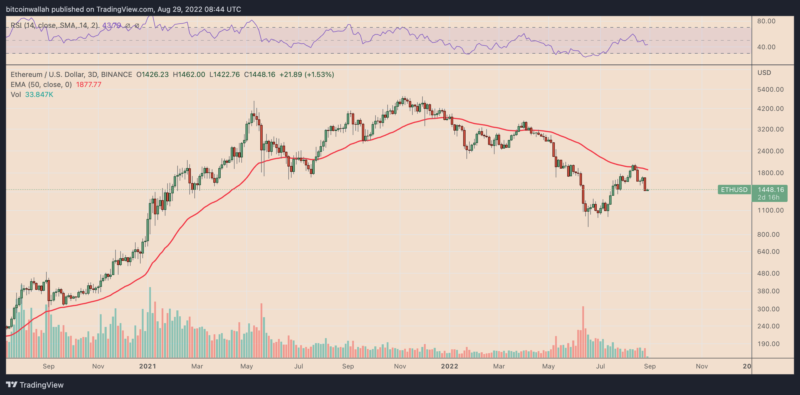 A bearish ETH market appears to be one of the primary drivers behind the poor NFT statistics. Notably, the price of one Ether has fallen from $4,950 in November 2021 to below $1,500 in August 2022.