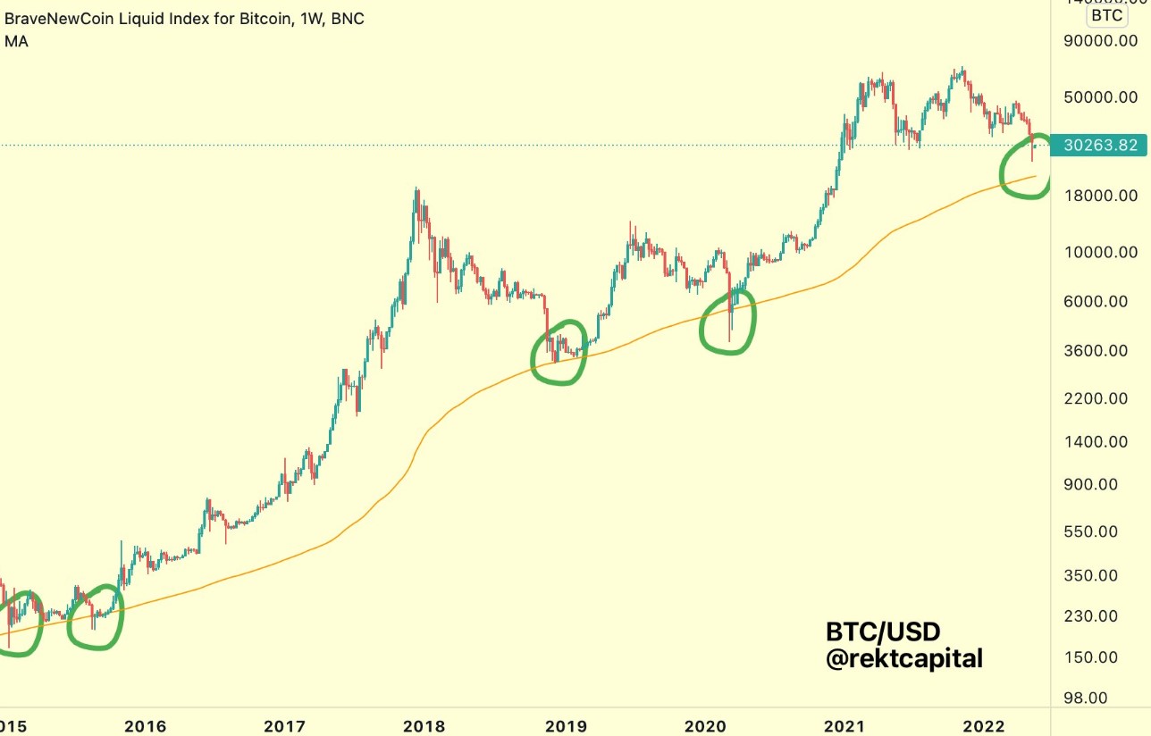 Further insight into what price level to keep an eye on for a good entry point moving forward was offered by crypto trader and pseudonymous Twitter user ‘Rekt Capital’, who posted the following chart of Bitcoin relative to its 200-day moving average.