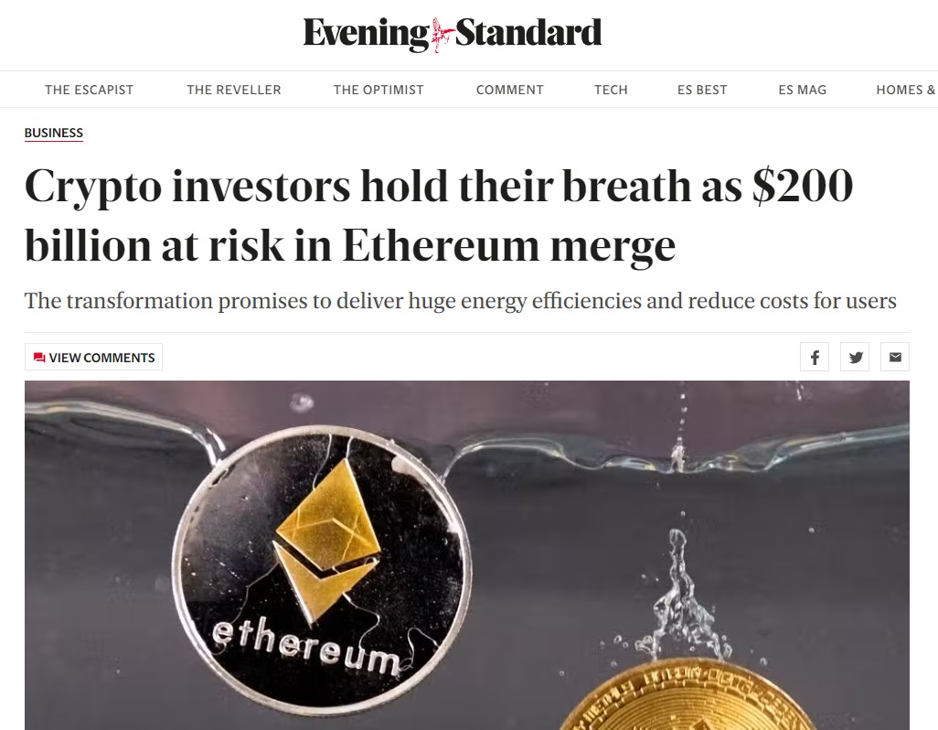 British newspaper the Evening Standard suggested crypto traders have been “holding their breath” ahead of the upcoming Merge, as a failed upgrade could put the entire cryptocurrency ecosystem “at risk.”