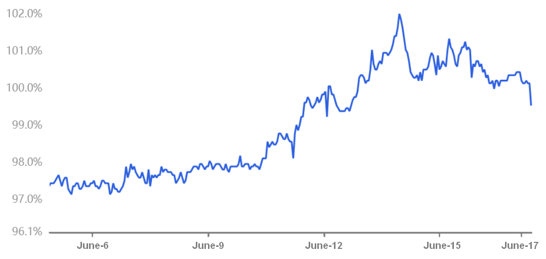 Contrary to expectations, Tether had been trading with a premium in Asian peer-to-peer markets since June 12. Despite the massive sell-off in crypto prices, investors have been seeking protection in stablecoins instead of exiting to fiat currency. This movement lasted until June 17, as the USDT paired its price versus the official foreign exchange currency rate.
