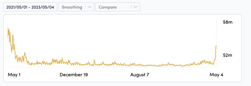 On May 2, ETH transaction fees hit an aggregate amount of more than $19 million, a level not seen since May 2022, according to Crypto Fees. The Ethereum blockchain remains the most expensive network in terms of transaction fees at the time of writing.