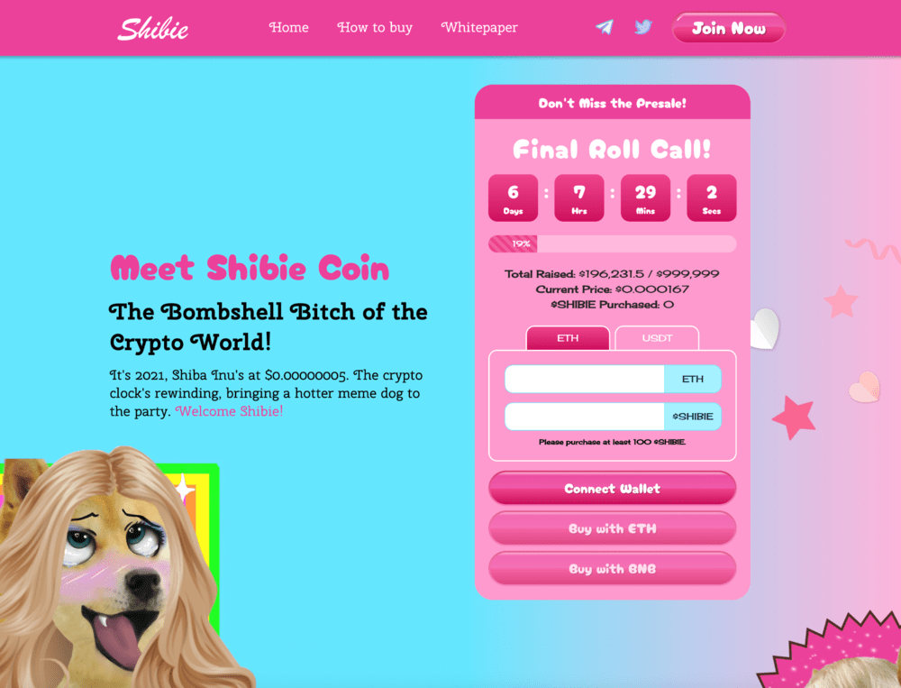 Ako výborná ukážka slúži predpredaj Shibie. Iniciatíva vyzýva investorov, aby sa pridali k projektu a pomohli mu dosiahnuť rovnaký úspech po vzore známej kryptomeny Shiba Inu. Počas krátkeho trvania predpredaja sa už podarilo získať od investorov takmer 200 000 dolárov.