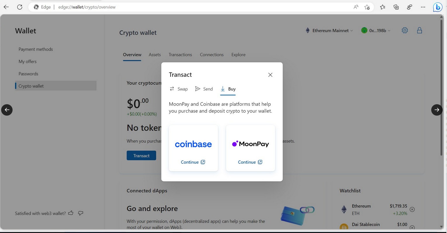Newest in the gauntlet of questionable upcoming Microsoft Edge features, a crypto wallet