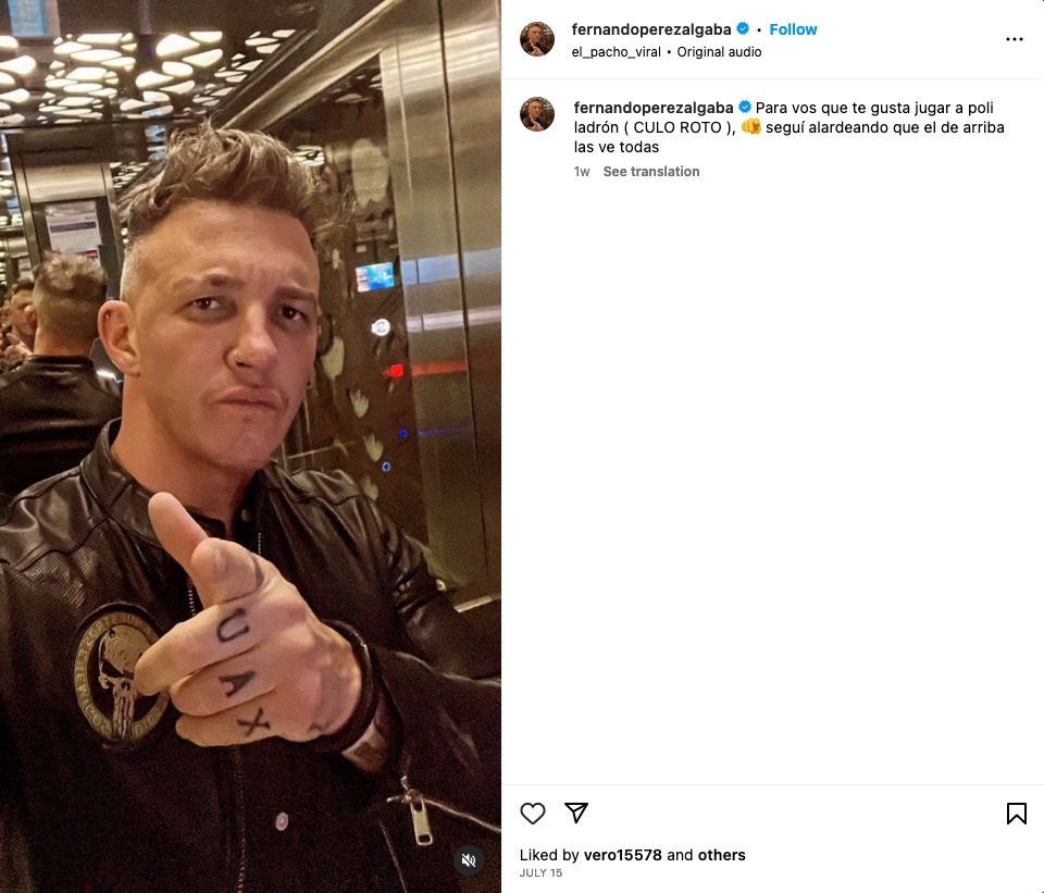 It was reported that Algaba had a $3,300 (900,000 Argentine pesos) debt in bounced checks, $4,400 (1.2 million Argentine pesos) owed to banks and another debt of $70,000 again related to a bounced check.