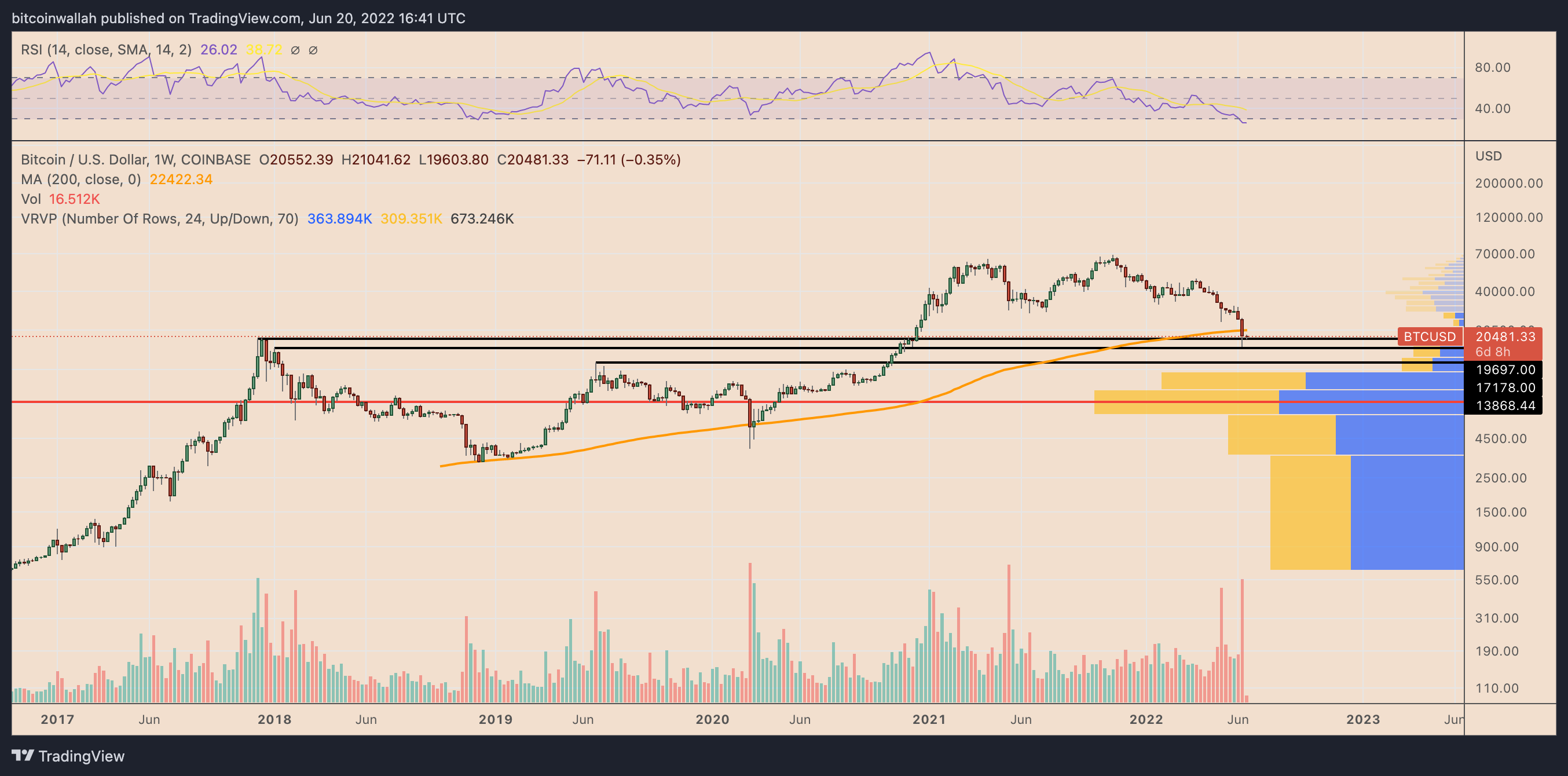 Bitcoin’s likelihood of retesting $17,000–$18,000 as support will be all but guaranteed if BTC price breaks below $20,000 again.