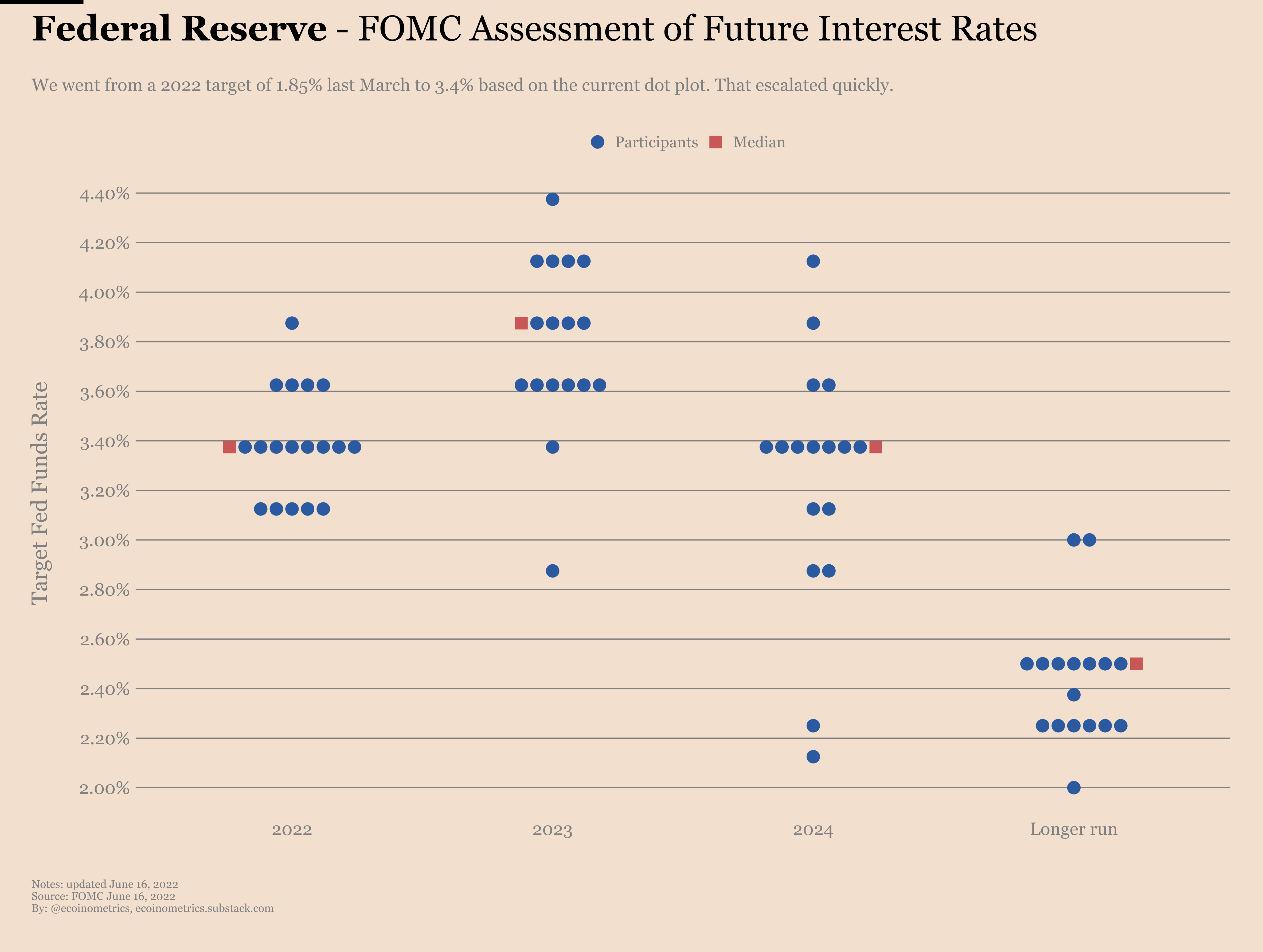 The U.S. central bank slashed rates by 75 basis points on June 15, its highest since 1994. Meanwhile, its “dot plot” reveals aims to push the lending rates to 3.4% by the end of 2022 versus the current 1.5–1.75% range.