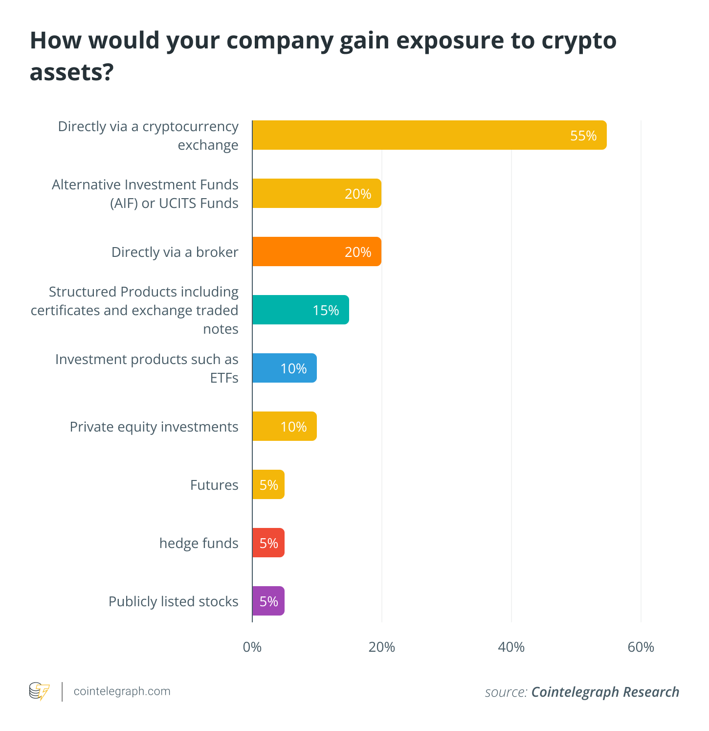 https://images.cointelegraph.com/images/840_aHR0cHM6Ly9zMy5jb2ludGVsZWdyYXBoLmNvbS91cGxvYWRzLzIwMjItMTAvNmMwNmNhZDMtNWQyMy00OWIyLWE1YWYtNmQ3NTVlMTIwYjA4LkpQRw==.jpgThe latest survey carried out by Cointelegraph Research among 84 professional investors across the globe revealed that out of $316 billion in assets managed by the respondents, 3.3%, or approximately $10.42 billion, is invested in cryptocurrencies. Some surveyed investors reported over 50% exposure to digital assets, but respondents’ median percentage invested in cryptocurrencies stands at about 3%.