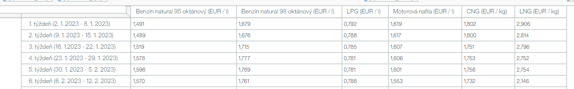Napriek tomu v porovnaní so začiatkom roka si za natural 95 stále priplácame takmer o 8 centov viac. Na opačnej strane cena LNG poklesla tento rok už takmer o jedno euro.