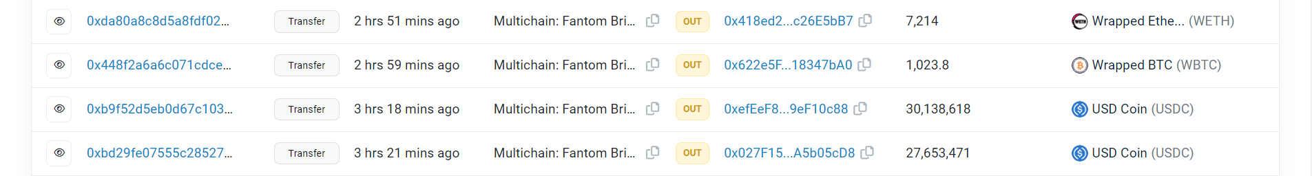 On July 6, 7,214 Wrapped Ether (WETH) tokens (worth $13.6 million), 1,024 Wrapped Bitcoin (WBTC) (worth $31 million) and $58 million worth of US Dollar Coin (USDC) were withdrawn from the Fantom bridge’s Ethereum smart contract, with a total of approximately $102 million in cryptocurrency withdrawn.