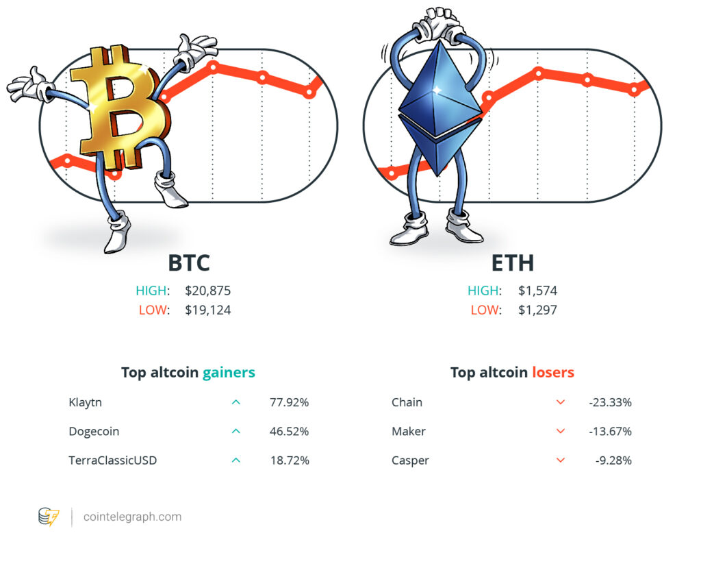 Early in the week, Bitcoin traded sideways between $19,000 and $20,000 with relatively little price fluctuation. On Oct. 25, the asset began moving up toward $21,000, finding resistance at the level on Oct. 26 before retracing back toward $20,000 on Oct. 27, according to Cointelegraph’s BTC price index.