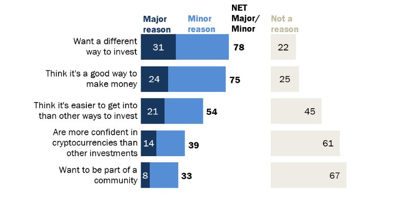 It’s unfortunate, given the vast majority of crypto user respondents said they became interested in cryptocurrency because they were looking for a “different way to invest,” and thought it was a “good way to make money.”