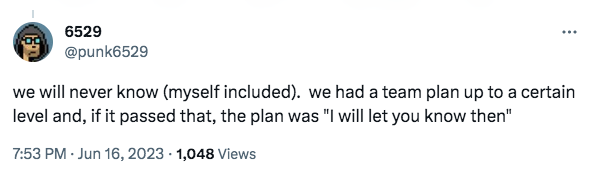 It’s hard to go past “The Goose” from artist Dmitri Cherniak’s Ringers generative art collection. This iconic piece sold as part of Sotheby’s recent Grails II event (an auction of NFT art seized from bankrupt crypto hedge fund Three Arrows Capital) for a whopping $6,215,1000 to Punk6529. Going into the auction, the sale price was estimated between $2 million to $3 million.