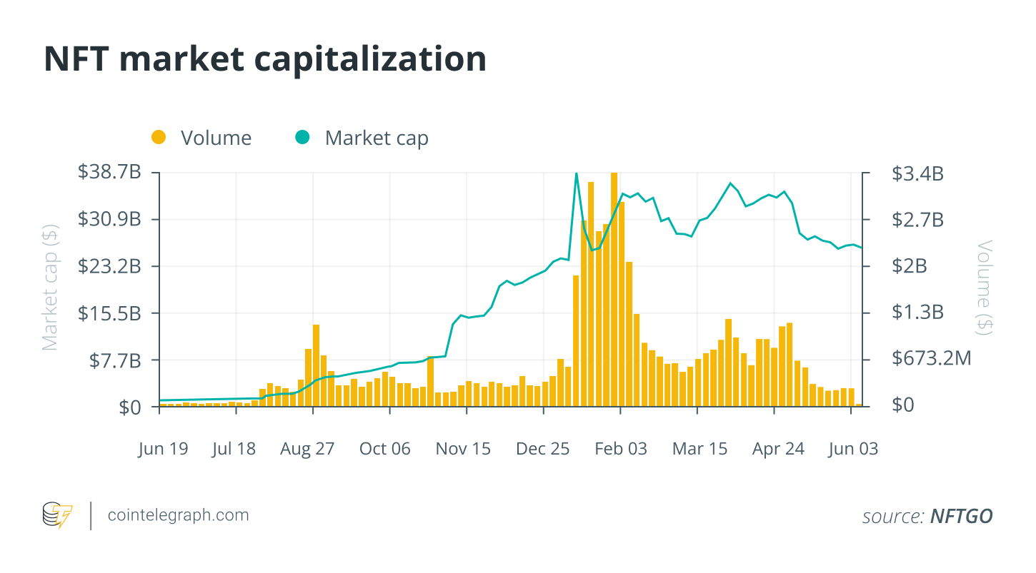 Still, the genesis tweet NFT could still have changed hands at $50 million had a single collector with enough Ether (ETH) to go around decided that the token is indeed worth such a price. Bored Apes are still trading with an average price counting in hundreds of thousands of U.S. dollars. There are signs that the market is in decline. But why shouldn’t it be, given the entire crypto market is down?