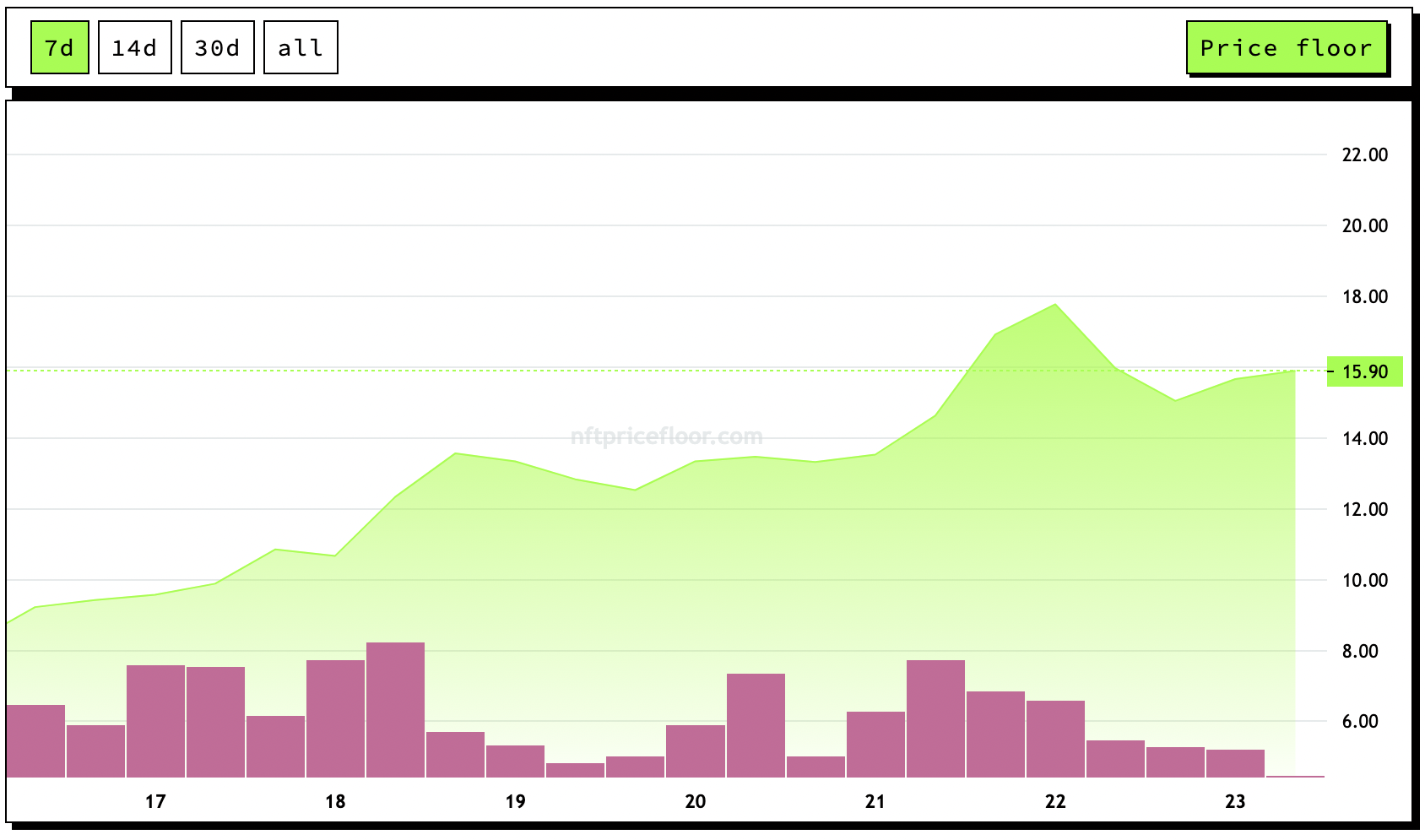 NFT Worlds saw a boost in growth in the last seven days reaching a floor price of nearly 18 Ether.