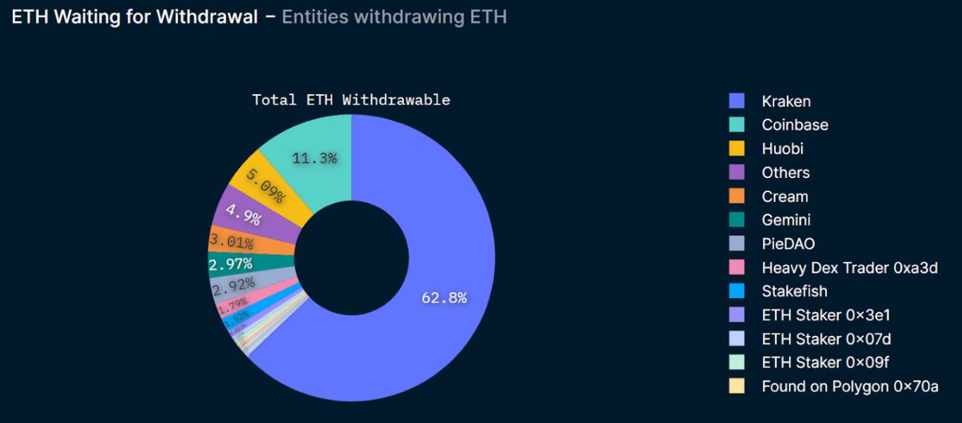 Major crypto exchanges like Binance, Bitfinex, Kraken and others that supported the Shapella upgrade saw a significant outflow of ETH from their exchange wallets, leading to the current balance decline.