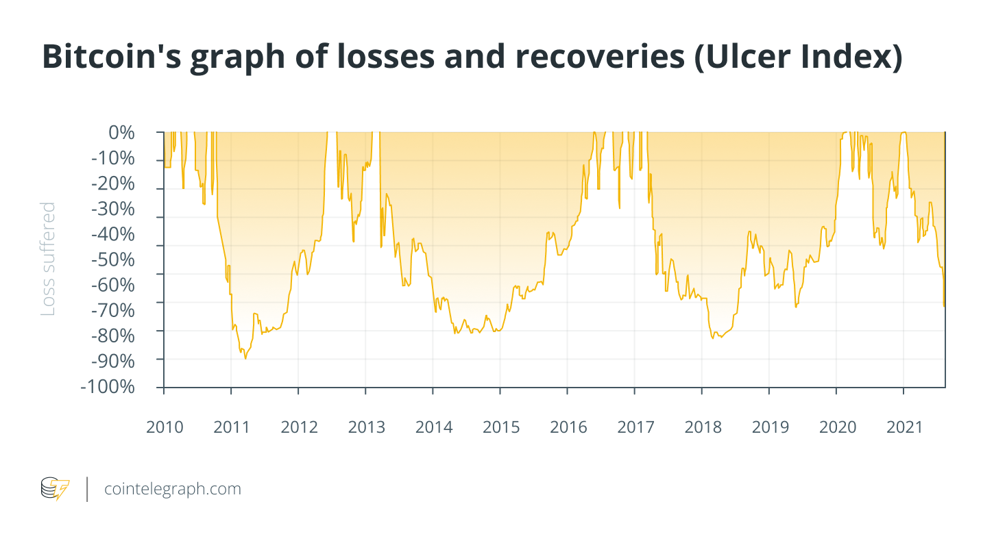 The Ulcer Index, i.e., the index created by Peter Martin that calculates how long an asset has been below the previous high, is crystal clear. Investing in Bitcoin leads to ulcers for many months, but then leads to incredible returns that, if one has the patience to wait for them, make one forget the period of bellyaches from the losses incurred.