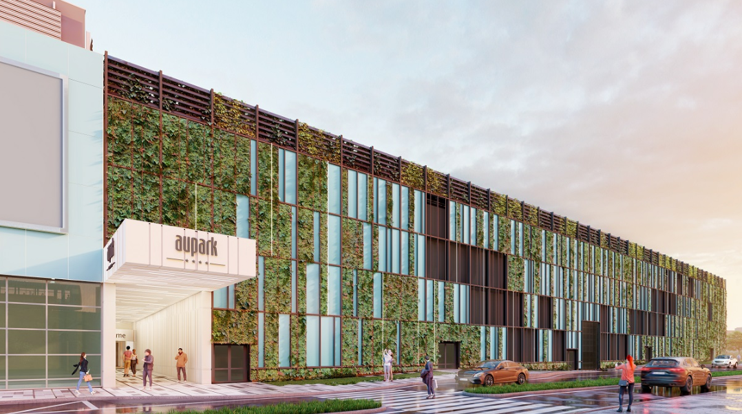 Fasáda budovy bude po novom v súlade s okolím, zmení svoj šat do zelena. Avšak nepôjde len o zmenu farebného prevedenia, Aupark dostane živú zelenú stenu, na ktorej bude rásť viac ako 40-tisíc rastlín.