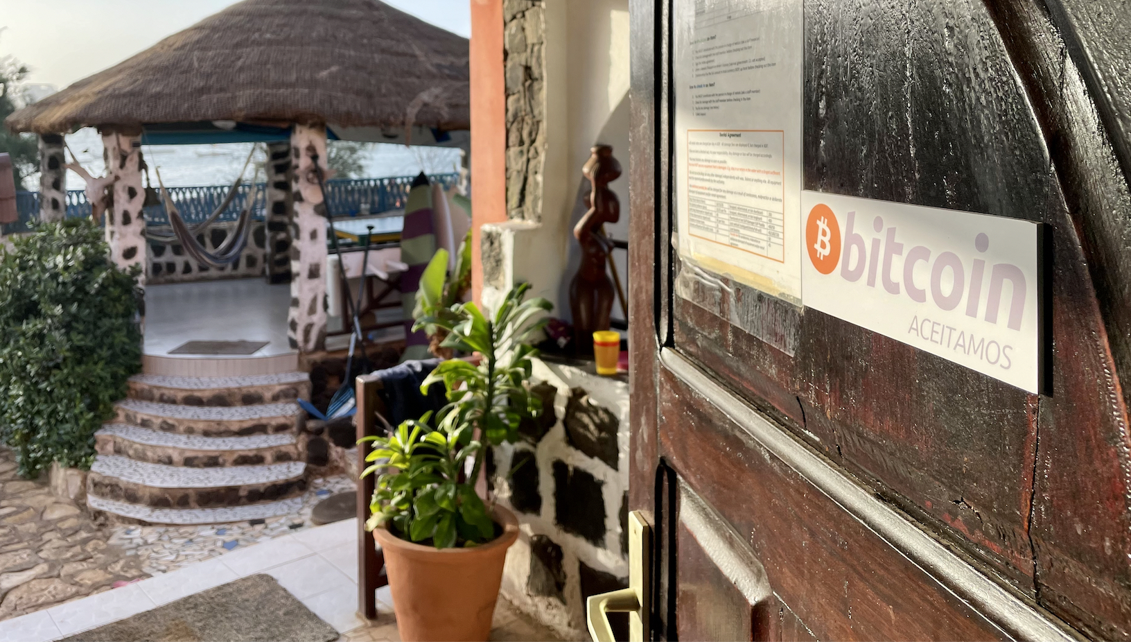 In the restaurant Praïnha (see picture), the Bitcoin sign is loud and proud. The owner of the establishment, Renée, is a surf coach and free thinker who was “open to the idea of Bitcoin. Why not?” They accepted their first payment in Bitcoin on Feb. 24 having set up a BTCPay Server earlier in the month.