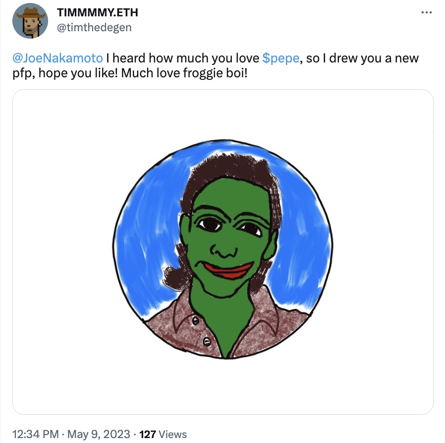 - A desire to fight back and stick it to the man! The overriding sentiment during the Twitter Space was that PEPE holders want to fight back against the VCs. It’s a shame GameStop was not able to trademark that narrative!