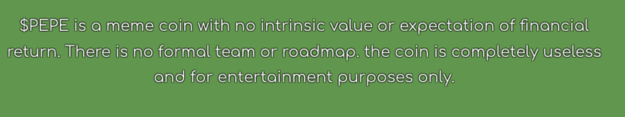 The Ethereum contract states: “Pepe is a community based memecoin with one mission: to make memecoins great again.”