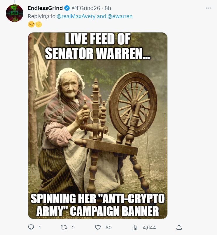 The ‘Pro-crypto Army’ took to Twitter to lambast the Senator. Popular YouTuber Coin Bureau ridiculed the strategy, saying, “Imagine thinking that building an ‘anti-crypto army’ is going to win you votes?” while crypto advocate Lord TJ suggested that the stance will “push innovation offshore.”