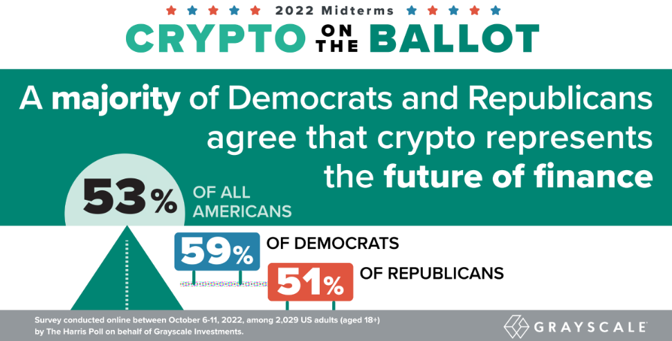 A survey commissioned by digital asset management firm Grayscale Investments in November 2022 shared similar sentiments, with the responses interestingly suggesting that 59% of Democrats consider crypto to be the future of finance. That’s more than the 51% of Republicans who said the same thing.