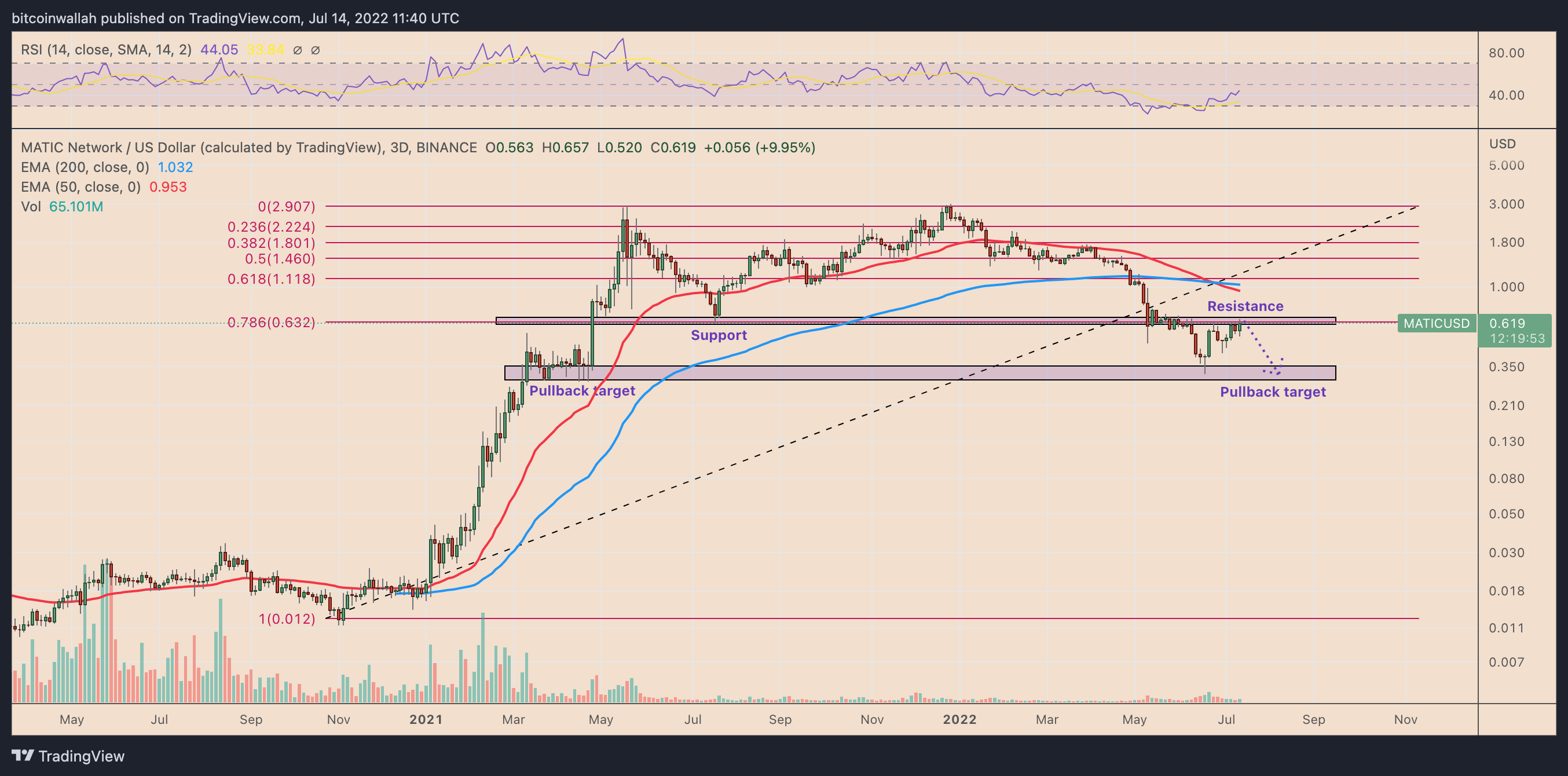 Polygon now tests a resistance confluence, defined by a support-turned-resistance range of $0.61-0.67 and a Fibonacci retracement line near $0.63, for a potential breakout in July.