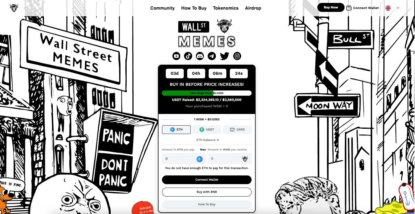 Skvelou alternatívou na investovanie sú v súčasnosti meme coiny, ktoré nenasledujú trend kryptomien. Do projektu Wall Street Memes môžete investovať veľmi lacno a po jeho uvedení na burzu dosiahnuť slušný zisk. V súčasnosti sa cena tokenov $WSM pohybuje okolo 0,0262 USDT, čo je skvelá cena na investovanie. S investíciou by ste sa však mali poponáhľať skôr, ako cena tokenov opäť vzrastie.