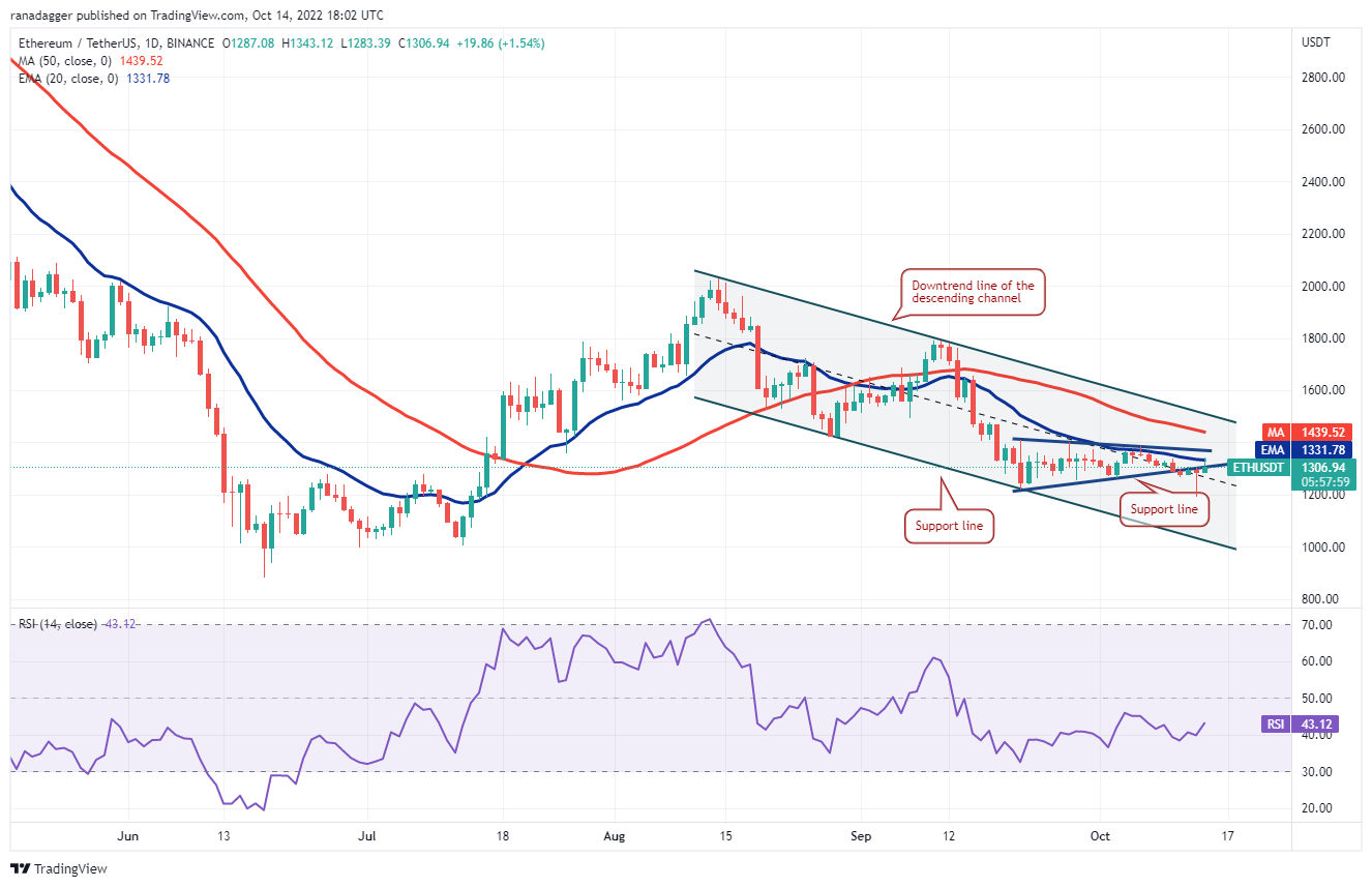 Ether (ETH) broke below the support at $1,220 on Oct. 13 but the bears could not keep the price down. The bulls vigorously purchased the dip, forming a hammer candlestick pattern.