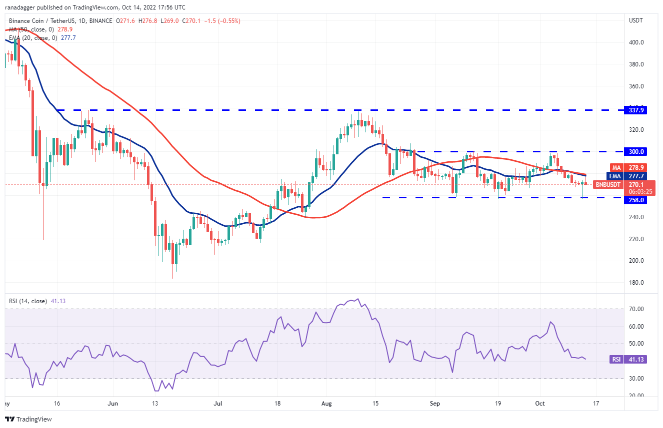 On the contrary, if the price turns up and breaks above the moving averages, the BNB/USDT pair could attempt a rally to the overhead resistance at $300. A break above this level could set the stage for a rally to $338.