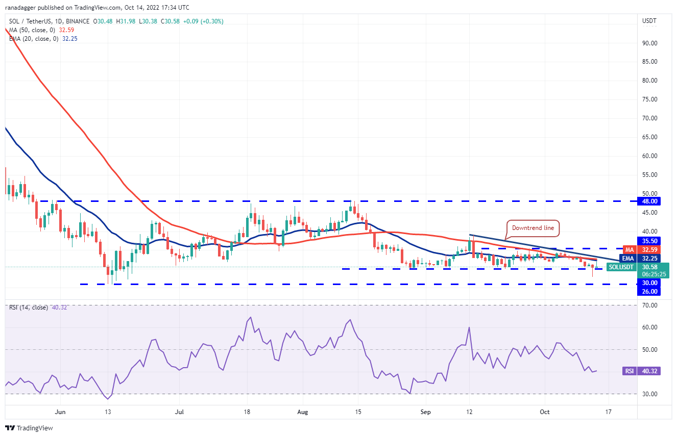 Solana (SOL) plunged below the $30 support on Oct. 13 but the bears could not build upon this strength and sink the price to the vital support at $26. The bulls arrested the drop at $27.87 and pushed the price back above $30.