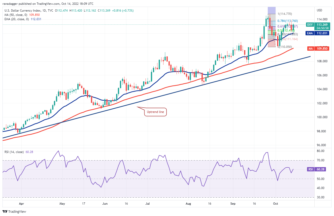 The U.S. dollar index turned down from 113.92 on Oct. 13 but the bulls arrested the decline at the 20-day EMA (112). This suggests that the sentiment remains positive and traders are viewing the dips as a buying opportunity.