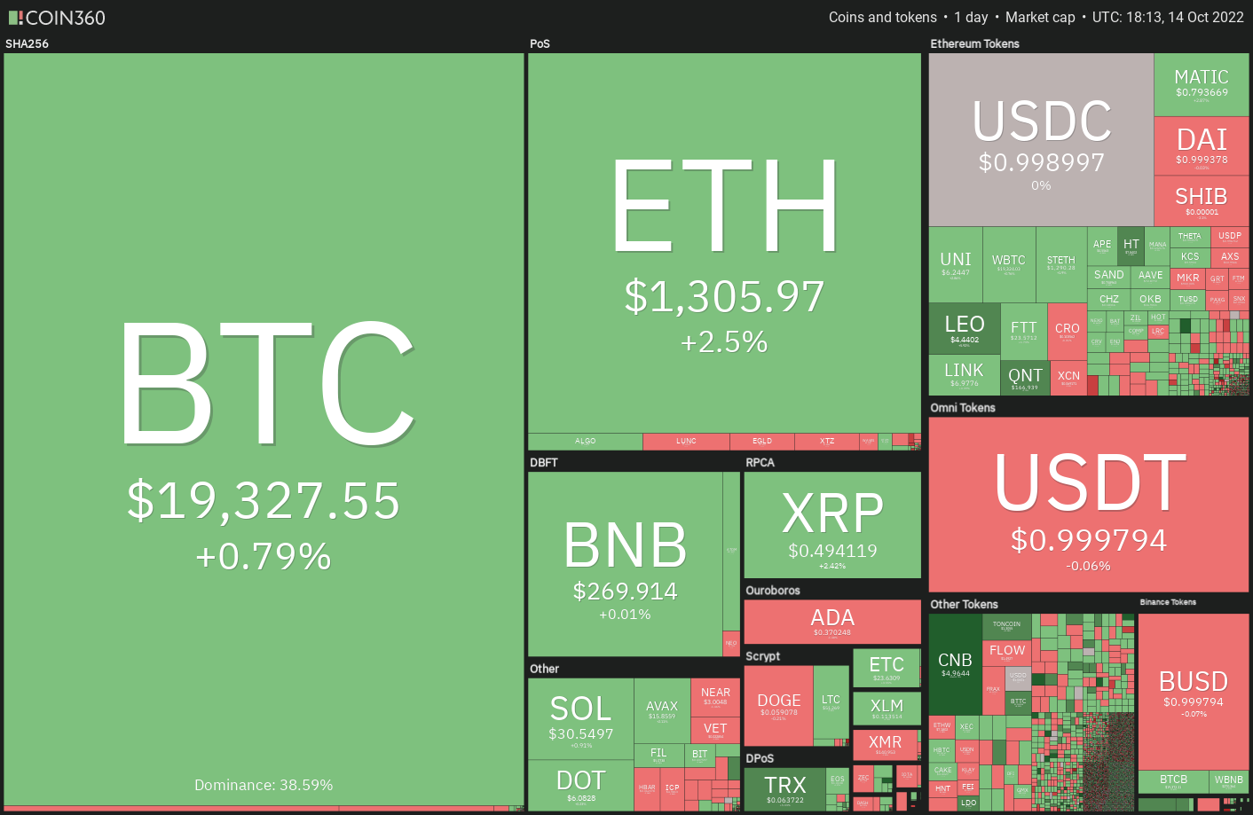 The S&P 500 oscillated inside its widest trading range since 2020 and Bitcoin (BTC) also witnessed a large intraday range of more than $1,323 on Oct. 13. However, Bitcoin still could not shake out of the $18,125 to $20,500 range in which it has been for the past several days.