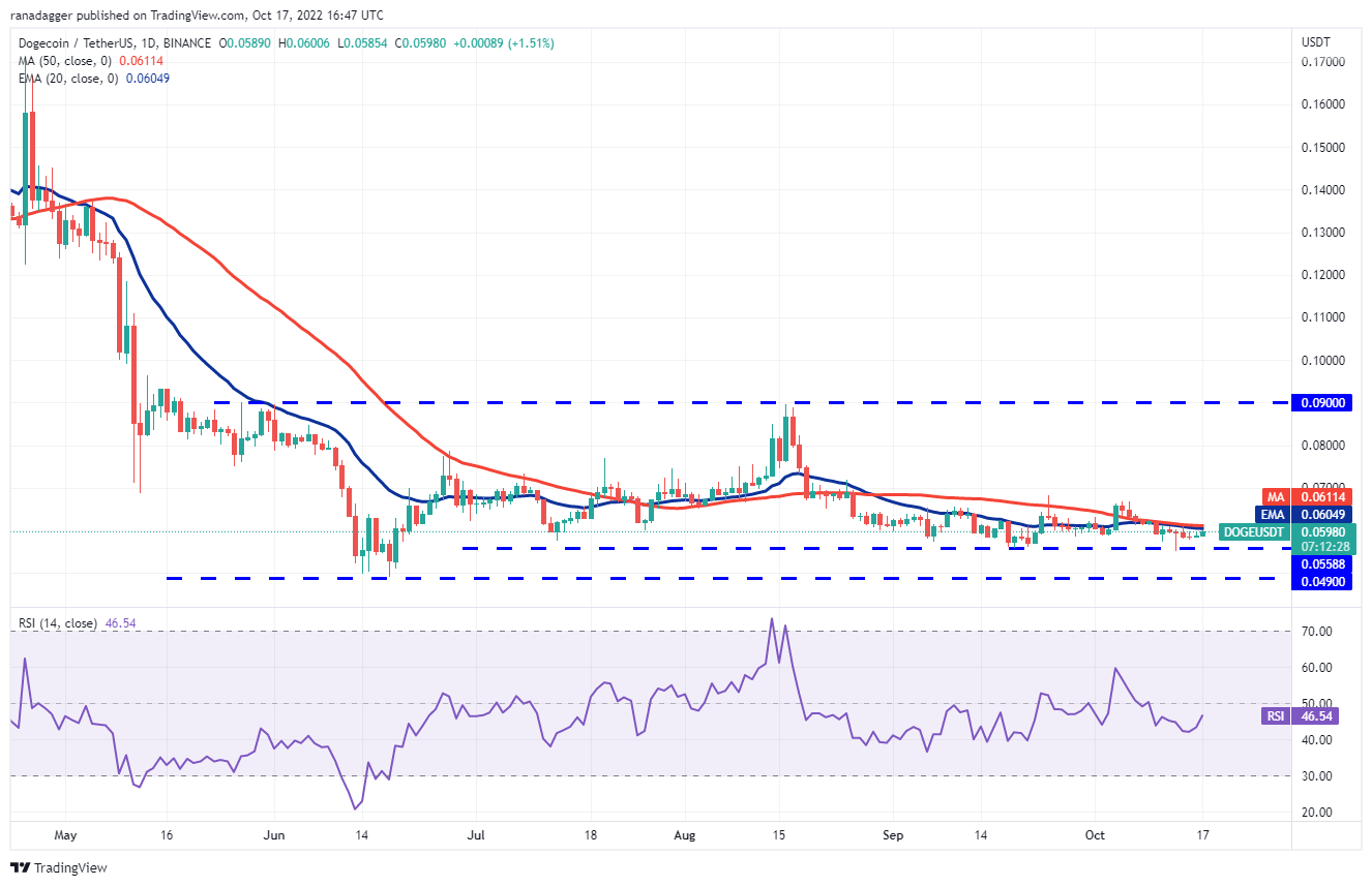 Dogecoin’s (DOGE) recovery is nearing the moving averages. This is an important level for the bears to defend because a break above the 50-day SMA ($0.06) could clear the path for a potential rally to $0.07.