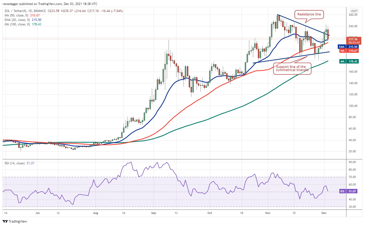 If the price rebounds off the 20-day EMA ($215), the bulls will make one more attempt to start the up-move by pushing the SOL/USDT pair above the overhead resistance at $243.12.