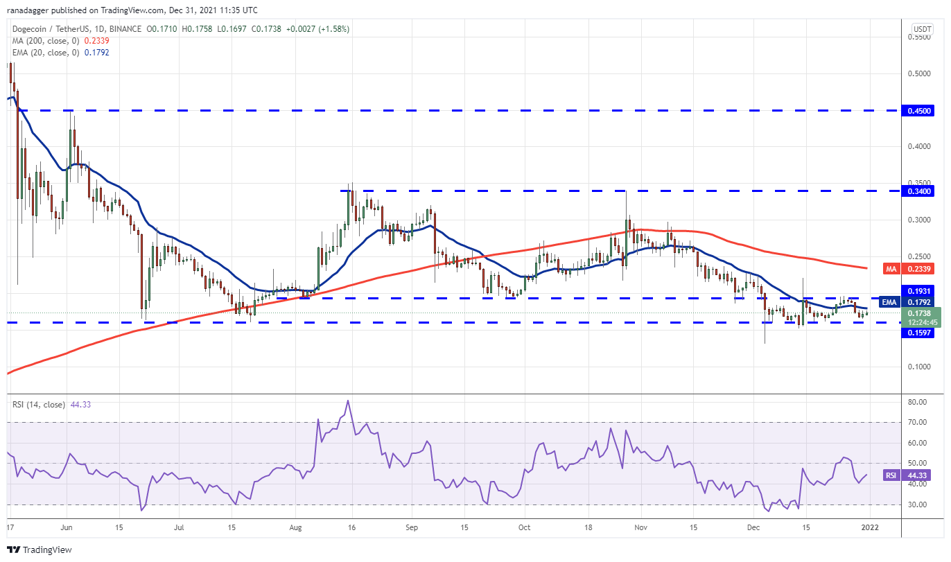 Dogecoin (DOGE) broke below the 20-day EMA ($0.17) on Dec. 28 but the bears could not challenge the major support at $0.15. This suggests that selling dries up at lower levels.