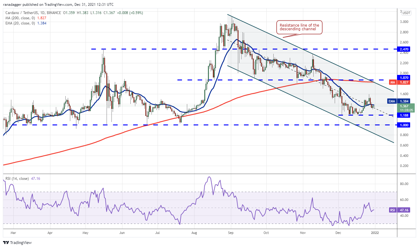 Cardano (ADA) broke and closed below the 20-day EMA ($1.38) on Dec. 29 but the buyers have not yet given up. They are attempting to push the price back above the 20-day EMA.