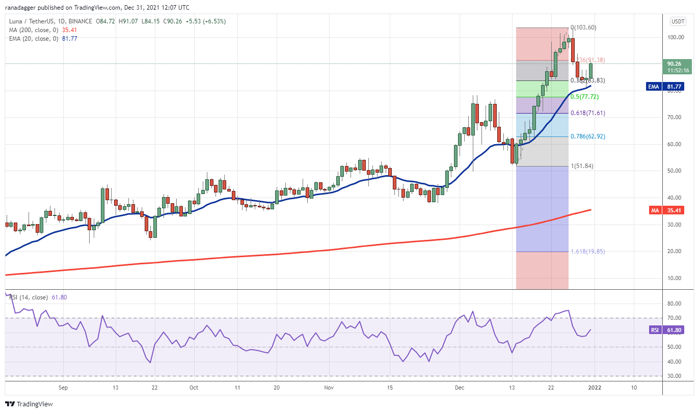 Terra’s LUNA token bounced off the 20-day EMA ($81) on Dec. 30, indicating that the sentiment remains positive and traders are buying on dips.