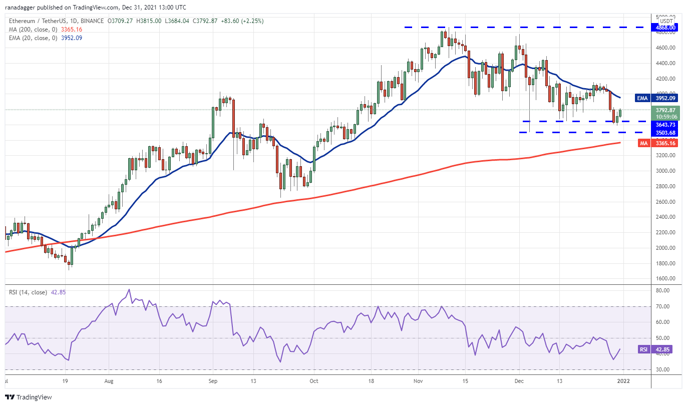 Ether (ETH) has bounced off the strong support zone at $3,643.73 to $3,503.68. The bulls will now try to push the price to the 20-day EMA ($3,952), which is an important level to watch out for.
