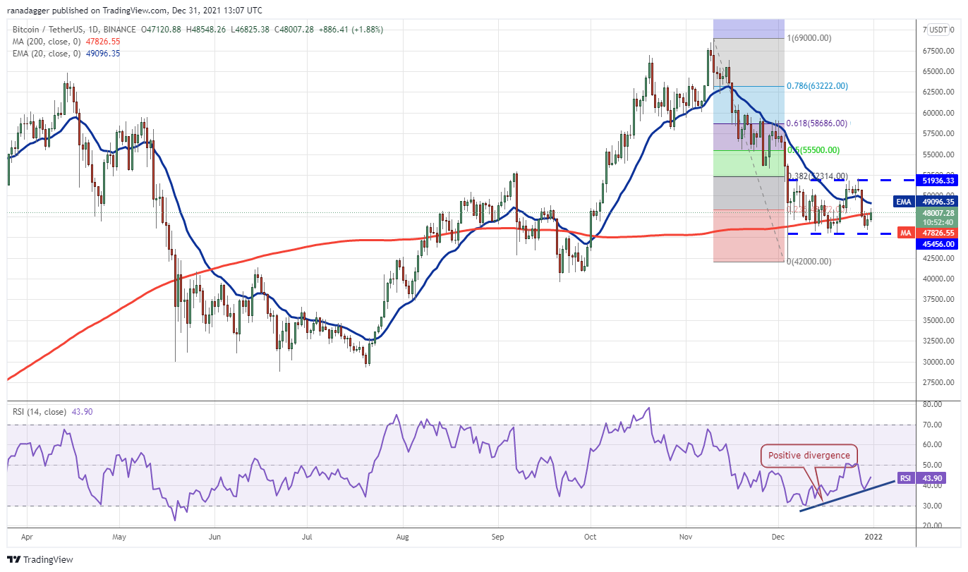 Bitcoin bounced off the $45,456 support and has risen above the 200-day simple moving average (SMA) ($47,826). However, the bulls are likely to face a strong challenge at the 20-day exponential moving average (EMA) ($49,096).