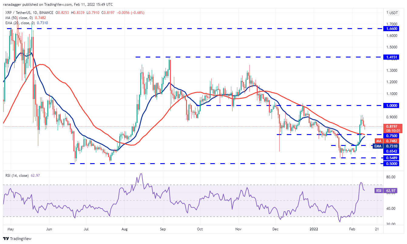 The rising 20-day EMA ($0.73) and the RSI in the positive territory indicate that bulls have the upper hand. The buyers will now attempt to defend the support at $0.75.
