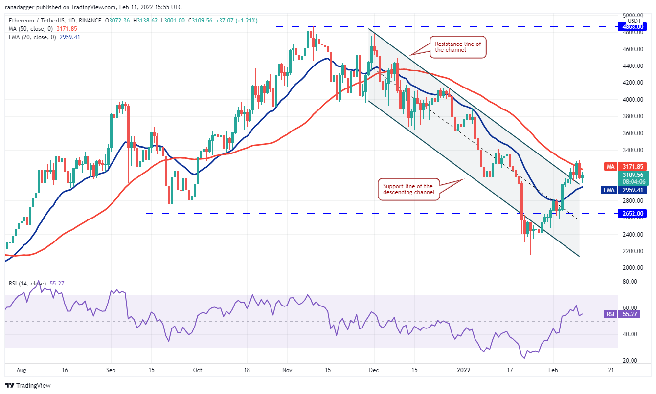 Ether broke and closed above the 50-day SMA ($3,171) on Feb. 9, but the bulls could not build upon this strength. The price turned back below the 50-day SMA on Feb. 10 which suggests that bears are attempting to trap the aggressive bulls.