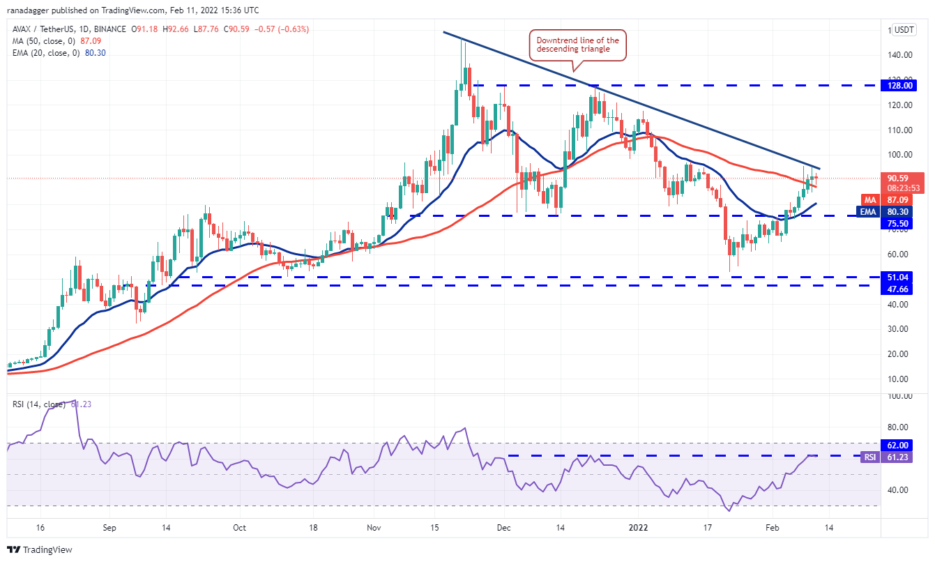 If the price rebounds off the 20-day EMA, it will suggest that traders are buying on dips. The bulls will then again try to thrust the price above the downtrend line and start a new up-move. If they manage to do that, the AVAX/USDT pair could rally to $117.53.