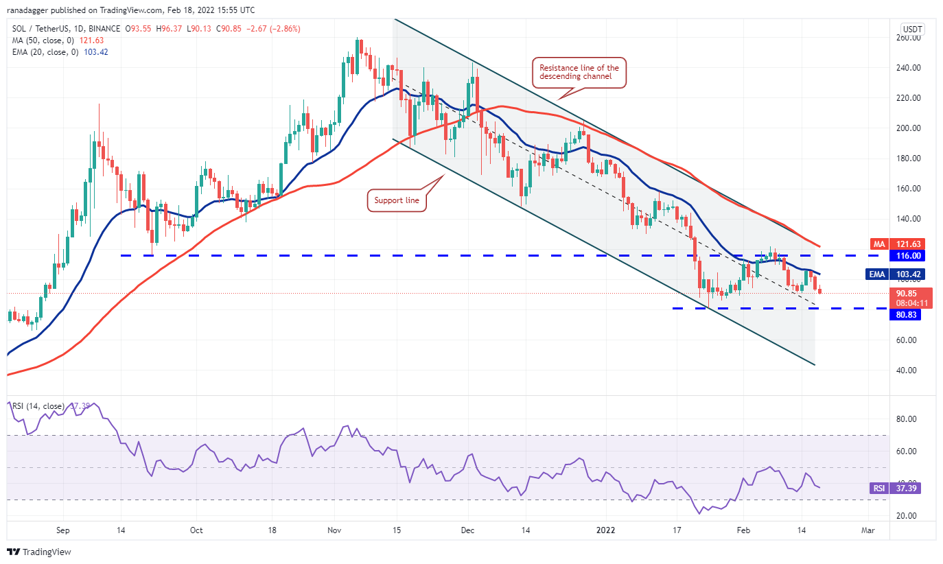 Solana (SOL) turned down from the 20-day EMA ($103) on Feb. 16 and the bears will now try to pull the price below the minor support at $90.72. If that happens, the decline could extend to the strong support at $80.83.