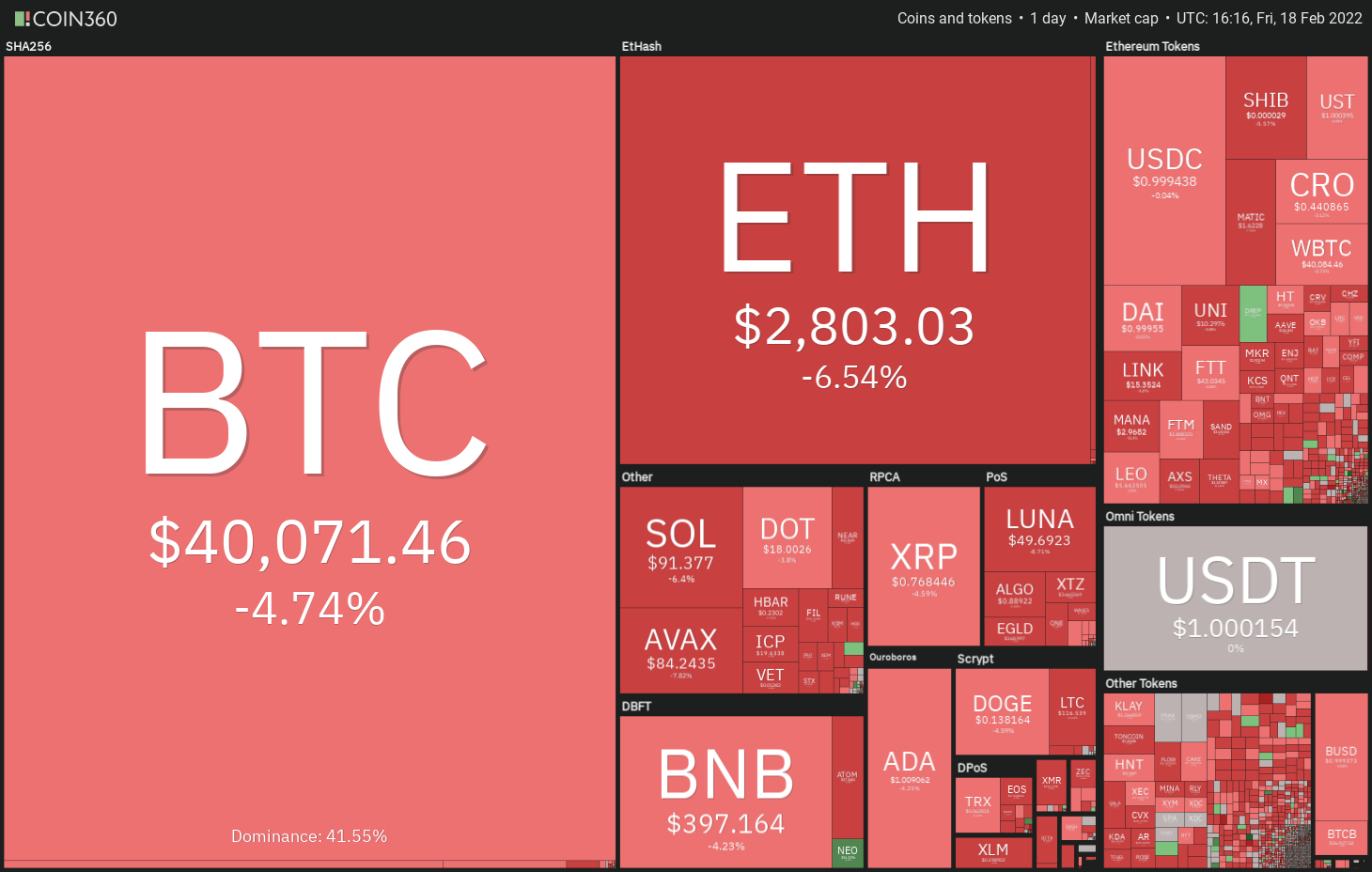 Tento príspevok bol pôvodne publikovaný na stránke https://cointelegraph.com/news/price-analysis-2-18-btc-eth-bnb-xrp-ada-sol-avax-luna-doge-dot a autorom článku je Cointelegraph By Rakesh Upadhyay. Tento článok je iba kópia originálneho článku.