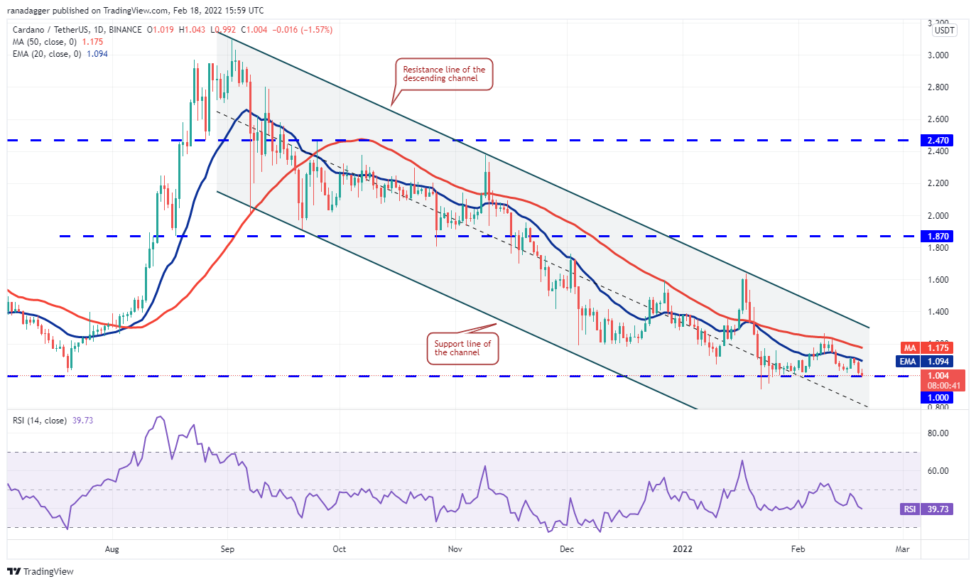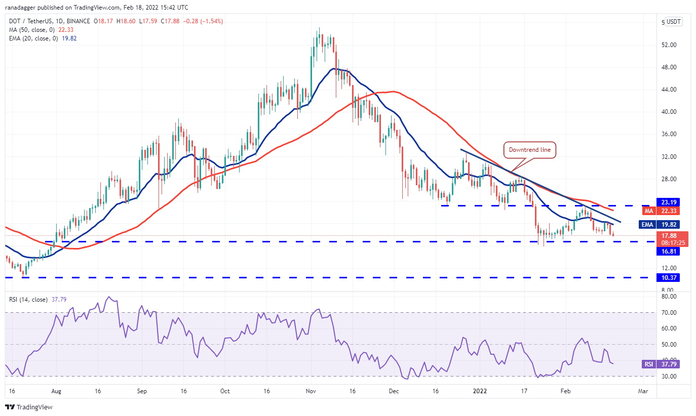 Polkadot (DOT) turned down from the 20-day EMA ($19.82) on Feb. 17, indicating that the sentiment remains negative and traders are defending the overhead resistance levels.